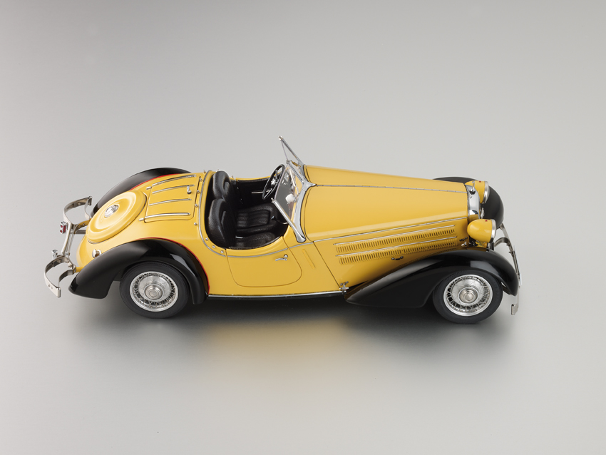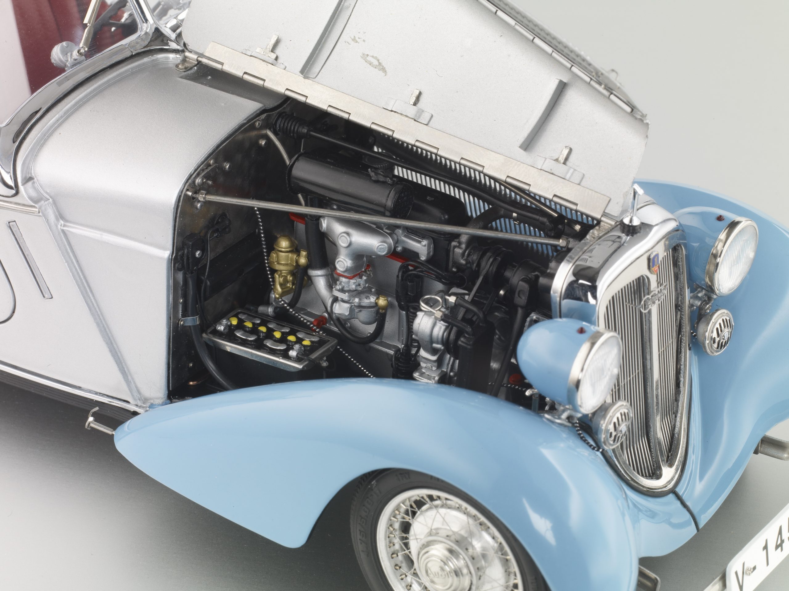 Auf der Berliner Automobil-Ausstellung im Februar 1935 gehörte der Audi Front 225 Roadster zu den schönsten und meistbewunderten Automobilen. Die sportlich gestylte Karosserie konnte gefallen und erregte bei den Besuchern großes Aufsehen. Mit der Miniatur dieses damaligen Edel-Roadsters ist es CMC gelungen, einen in Vergessenheit geratenen Meilenstein der eleganten 1930er-Jahre wieder zum Leben zu erwecken.