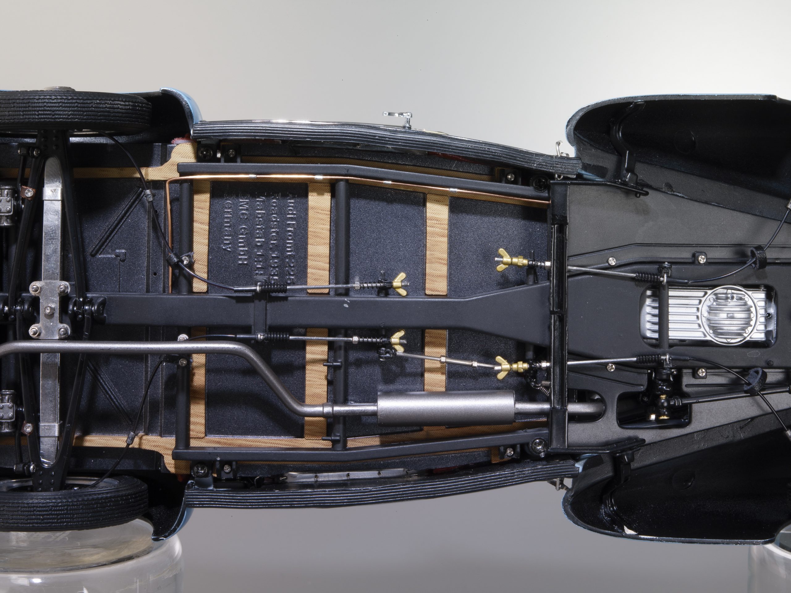- Hochdetaillierte Bodengruppe mit Darstellung filigraner Bremsgestänge und ummantelte Bremsseile der mechanischen Bremsanlage